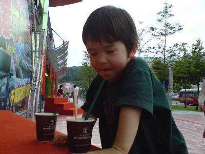 And the set-up for the big "Love to Shop" Promotional. They're giving away 3 Honda CRVs in the next three weeks. Binbin likes the car pictures plastered all around the mall these days.